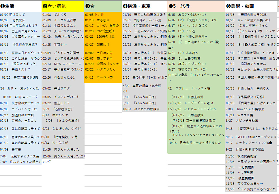毎回のタイトルを分類・整理して驚いた。