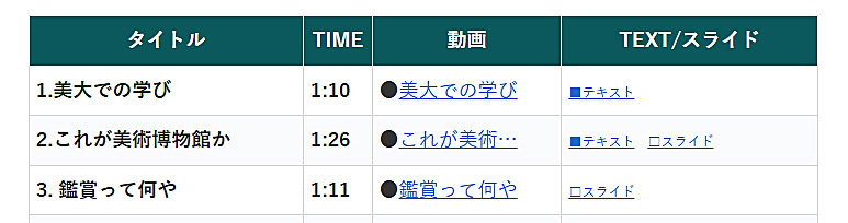 これは半期ごとに作成したWEBページで、参考資料ダウンロード、参考動画の視聴