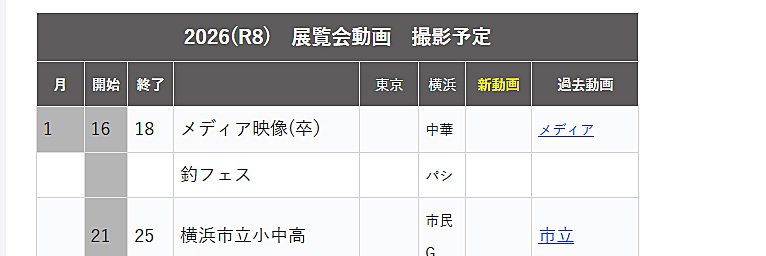 ・これは今年のYouTubeアップ予定展覧会動画のリストです