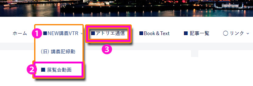 「アトリエ通信V7」「アトリエ通信V6」「D絵画研究室」「デジタル絵画研究室」4つあります。(PW=122333)