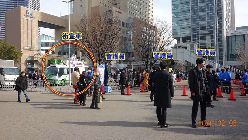 私らの場所は、前から3列目。街宣車のマン前だ。