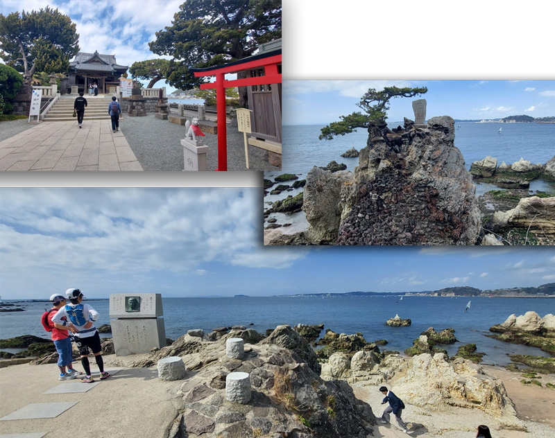 ❸それからは森戸神社の先の真名瀬海岸まで海辺を歩いた。