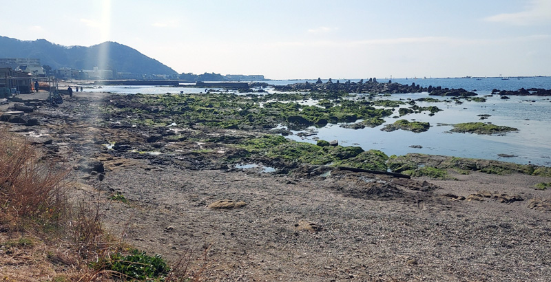 ❸それからは森戸神社の先の真名瀬海岸まで海辺を歩いた。