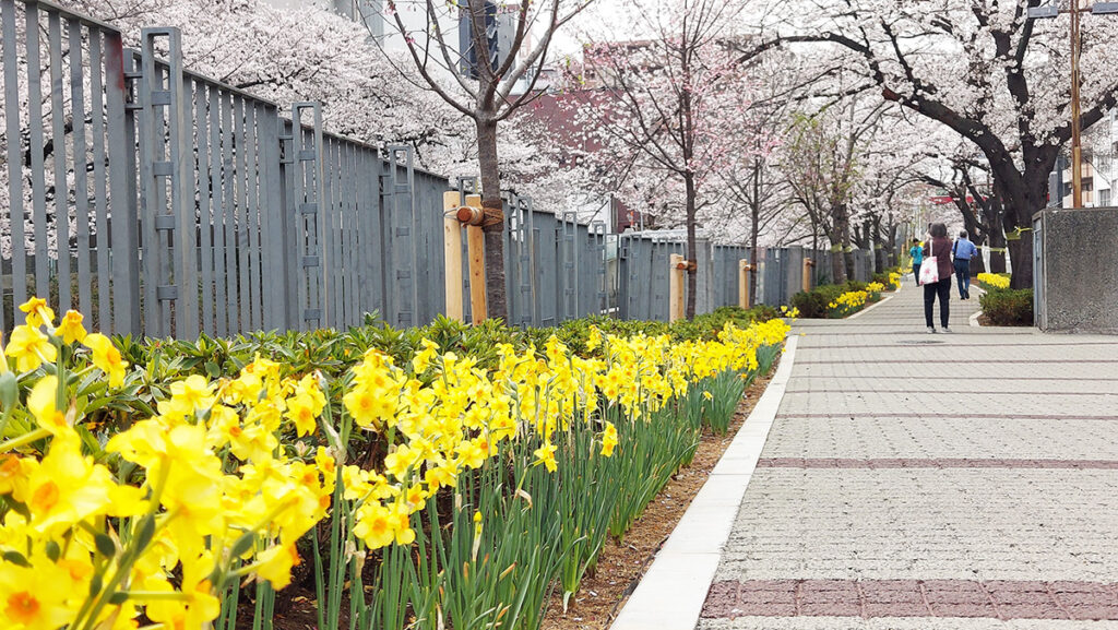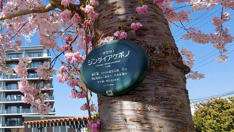 全国に植えられたソメイヨシノが寿命を迎えており、その後継に「ジンダイアケボノ」の植え替えが進んでいるそうな。