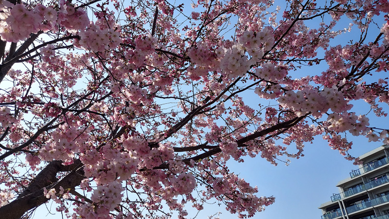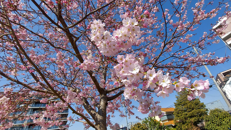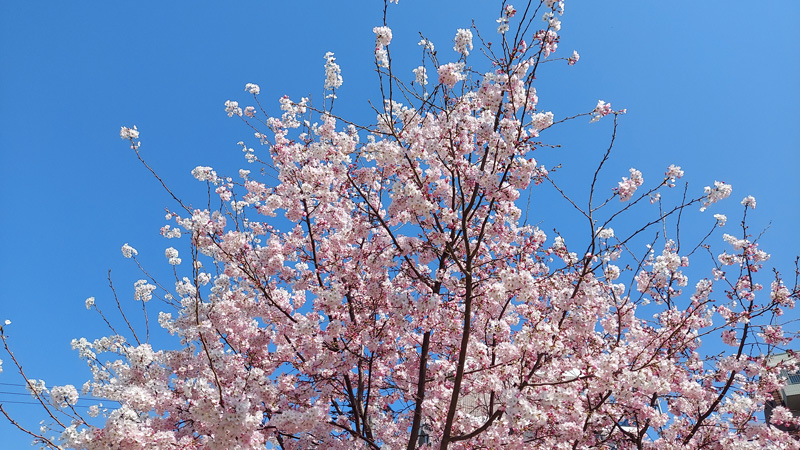 マンション脇の公園に、毎年きれいに咲いている一本の桜があります。