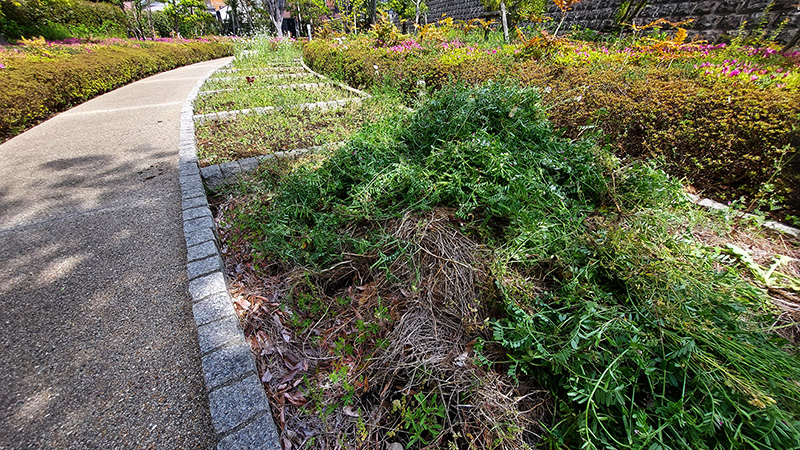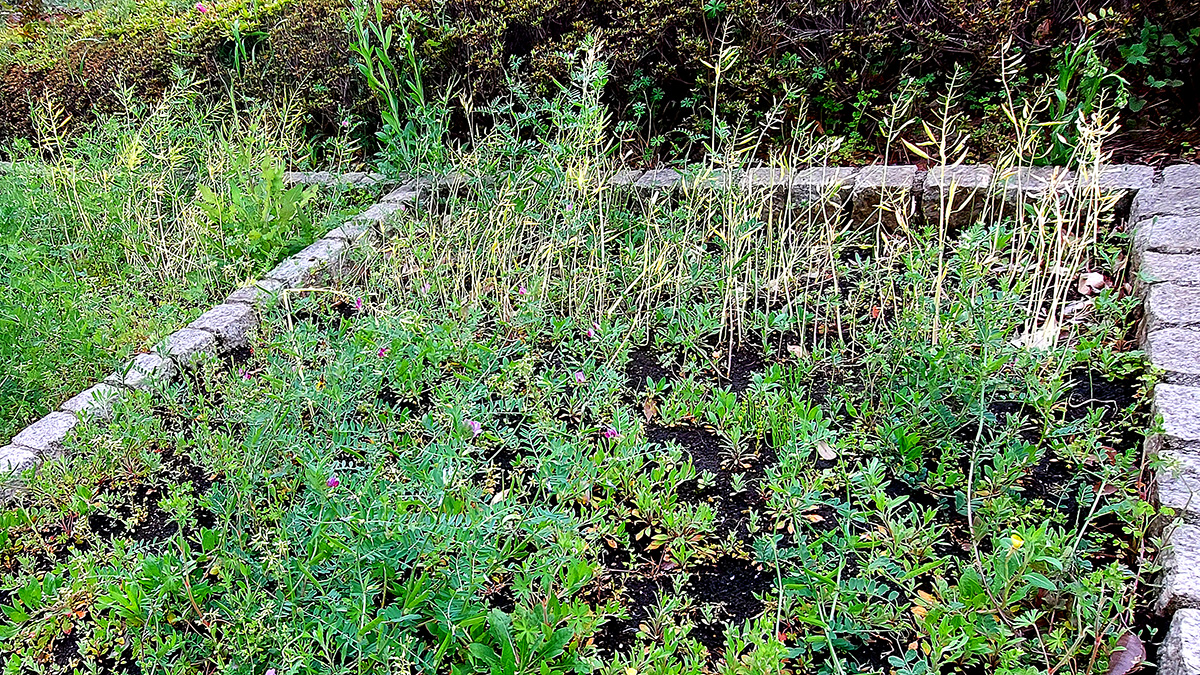 あちこちブロックに、「カラスのエンドウ」が大繁茂