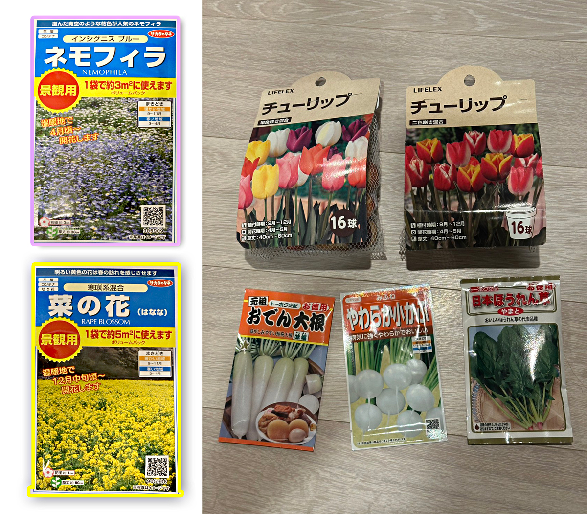 菜の花は、チョロチョロ咲き。チューリップは、ポロポロ。ネモフィラは、ほんのちょびっと咲いた。そして、野菜は収穫ゼロでした。